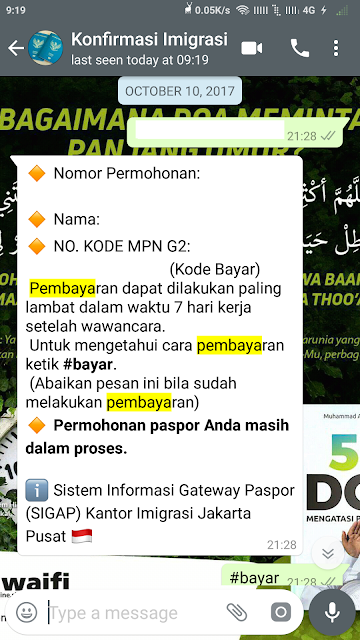 Selanjutnya, aku mengirim pesan singkat sesuai format: #nama lengkap#tanggal lahir#kapan akan datang ke imigrasi. Ga nunggu lama, aku mendapat jawaban seperti foto dibawah. Pokoknya ikutin aja step2nya yaa sesuai instruksi mereka.